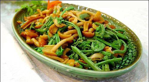 蛟河市長白山山野菜資源十分豐富,不僅品種繁多,而且產量很高。長白山山野菜享有很高的聲譽,山野菜生長在山野林中,是無公害蔬菜,沒有“農藥、化肥”無污染的綠色食品,含有很高的營養成份,在保健、抗癌上也起到了很好的效果,具有濃郁的特有鮮味,不僅受國人偏愛,在國外也極為暢銷。長白山山野菜主要有:刺嫩芽、蕨菜、黃花菜、薇菜、山芹菜、山蕨菜、猴腿、刺五加、蕁麻菜、婆婆丁、柳蒿、黃瓜香、大葉芹、水蕨菜、小葉芹、輪葉黨參、龍須菜、貓爪子、東風菜、山花菜、山白菜、唐松草、山胡蘿卜、沙參、貢菜、苦嫩芽等。在我市各類休閑度假村都可以品嘗到。